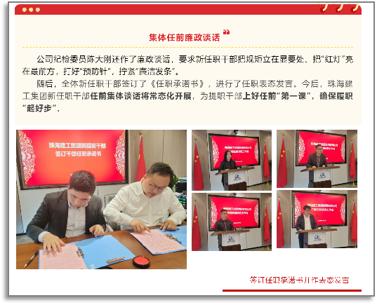 黨委書記開展任前集體談話,干部任職前進行公開表態(tài)。