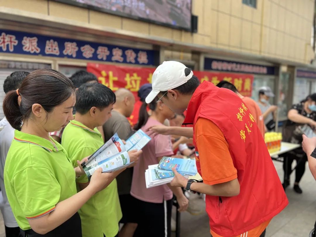 黨員志愿者為居民發放垃圾分類宣傳冊,耐心講解垃圾分類知識