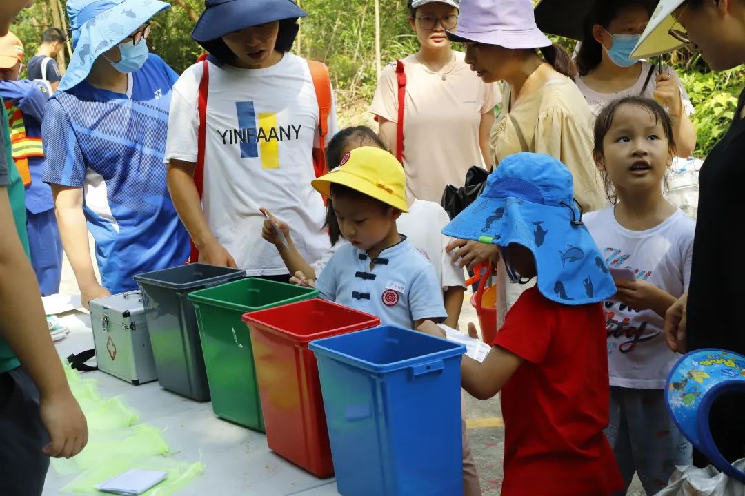 參與人員徒步上山時撿拾路道邊散落的垃圾,并在到達終點后,將撿拾到的垃圾分類投放到現場的垃圾桶內