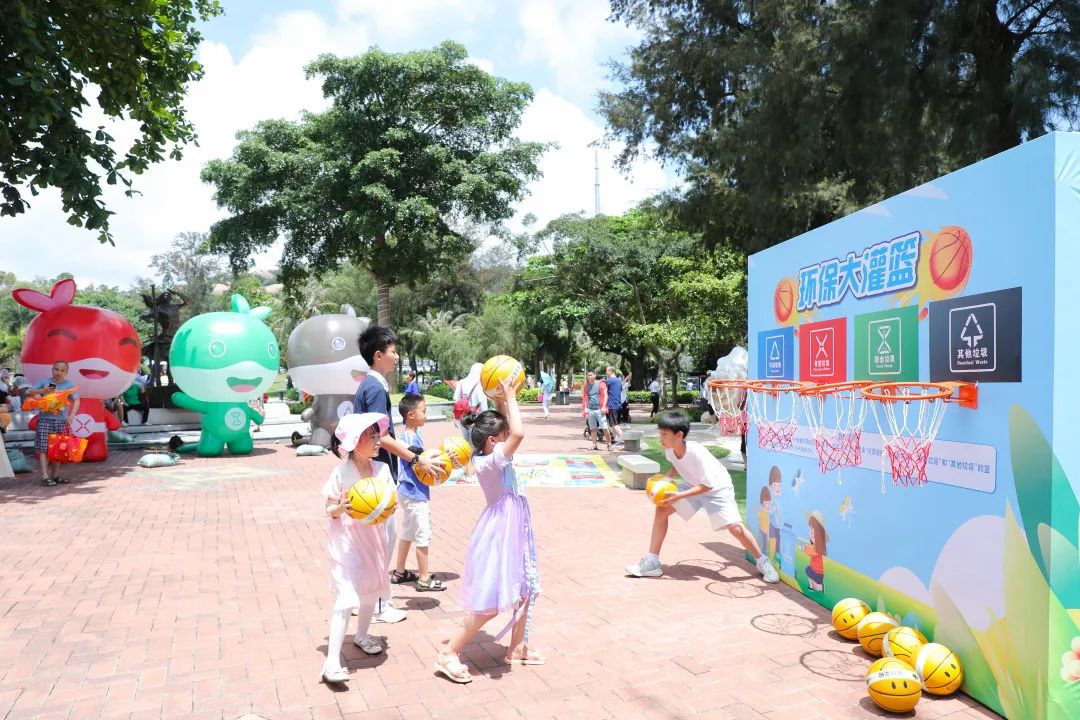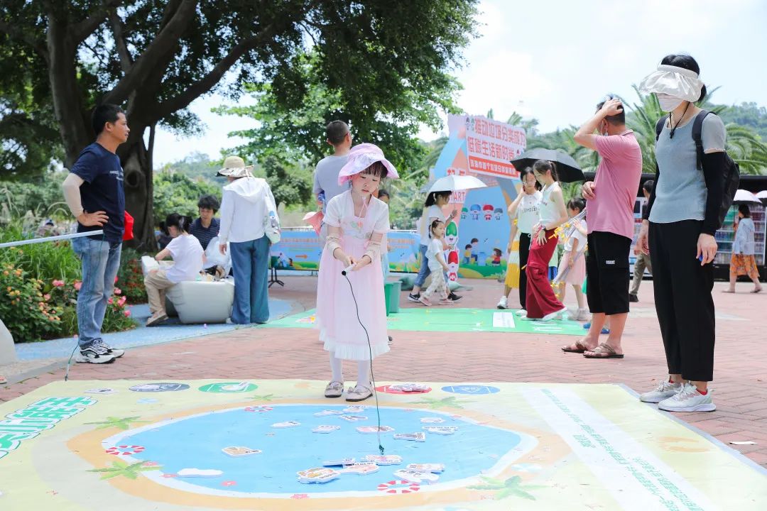 海濱公園里的垃圾分類游戲,吸引市民參與互動