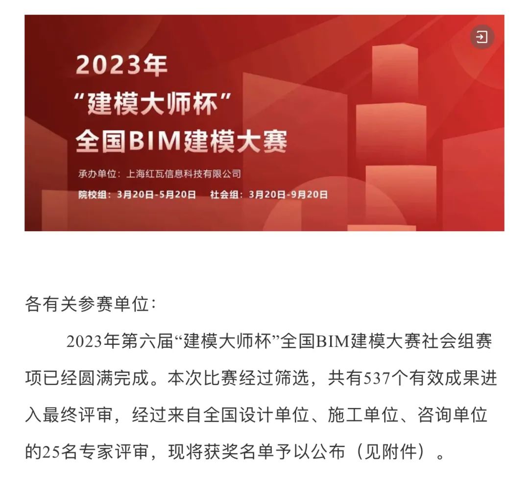 近日,珠海建工集團(tuán)參賽作品《金琴健康港項(xiàng)目BIM應(yīng)用匯報(bào)》榮獲2023年“建模大師杯”全國(guó)BIM建模大賽社會(huì)組二等獎(jiǎng),此次獲獎(jiǎng)的作品展現(xiàn)了公司在數(shù)字化施工及BIM技術(shù)應(yīng)用方面的突出表現(xiàn),是公司努力推動(dòng)數(shù)字化轉(zhuǎn)型的成果,也是對(duì)未來(lái)發(fā)展的有力鼓舞,接下來(lái)就讓我們一起走近看看吧。