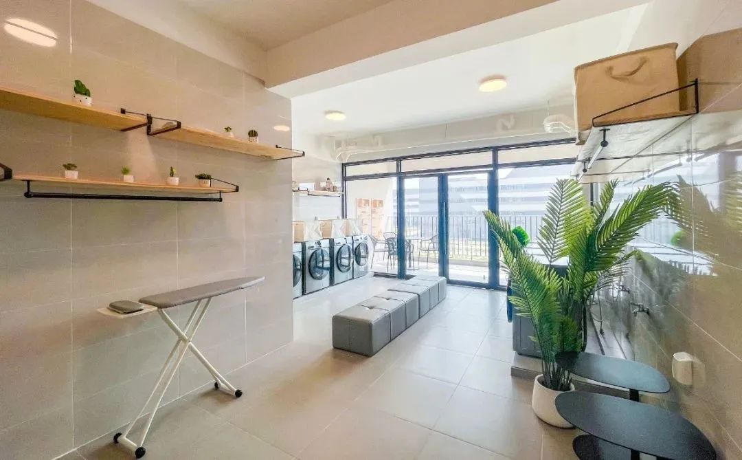 宿舍內配備公共洗衣房,熨衣板、洗衣機、晾衣簍、洗手池等設施一應俱全。
