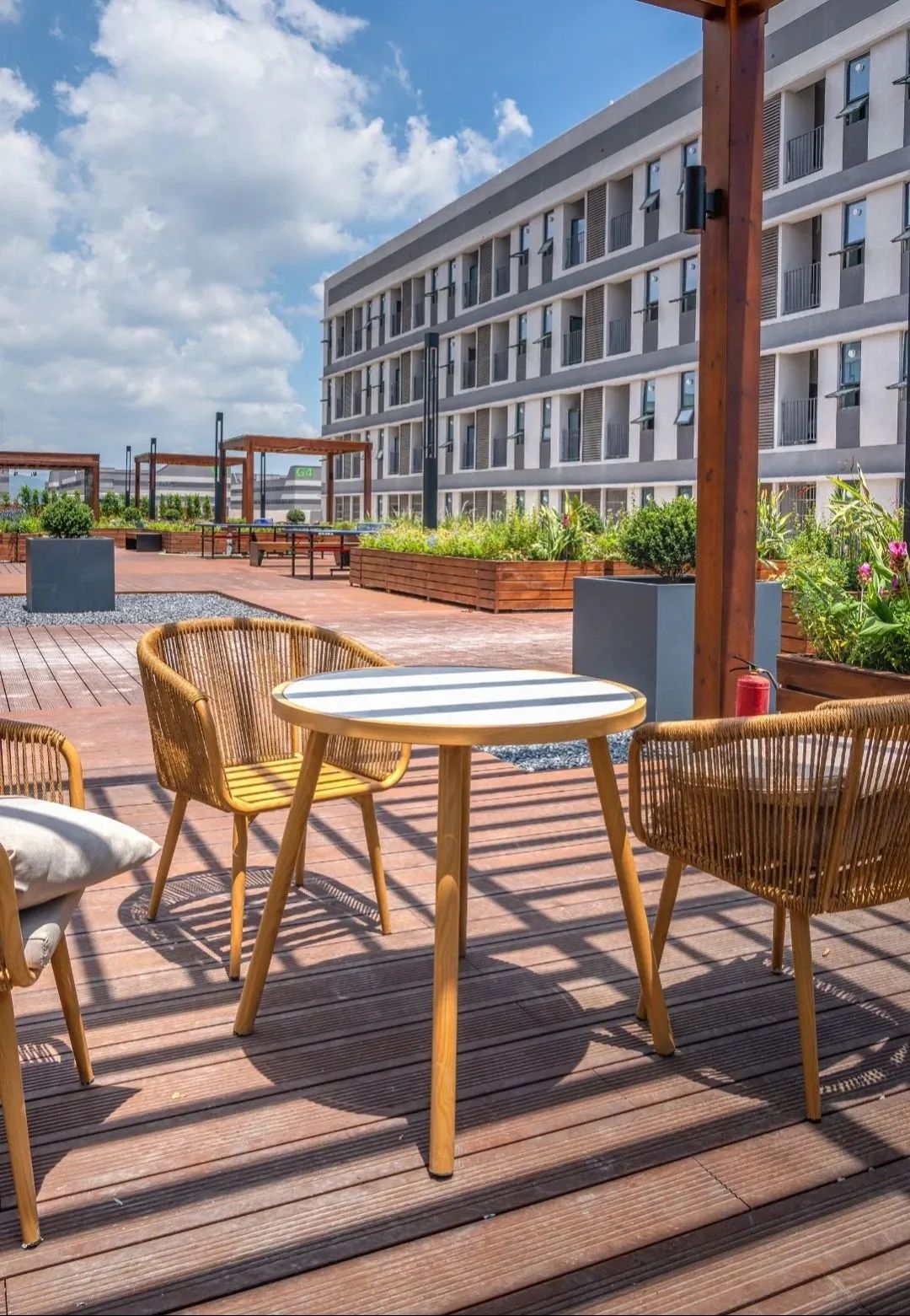 產業工人下班后,可以在這里看落日余暉,也可以舉杯對飲。露天大平臺,在重要的賽事期間,還可以成為觀看與討論賽事的交流社區。