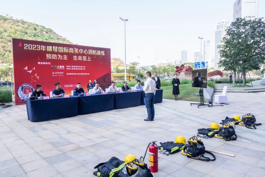 大橫琴置業副總經理王迅雁同志在點評本次演練活動時強調:要充分總結利用好本次消防演練取得的成果,不斷增強消防安全管理能力。一是要結合本次演練中發現的不足,在滅火和應急疏散預案中加以補充完善,進一步落實消防安全責任制;二是要不斷提高消防安全管理人員的專業能力和技能水平,進一步熟悉消防設施設備的使用,確保危急時刻頂得上,關鍵時刻靠得住;三是要維護保養好消防設施、器材及消防安全標志,按期開展防火檢查,及時消除火災隱患;四是要開展經常性的消防宣傳教育,不斷提高ICC橫琴國際商務中心各單位人員的消防安全意識。橫琴消防救援大隊、橫琴粵澳深度合作區蓮花社區、橫琴派出所相關負責人,大橫琴置業董事長唐文彬、副總經理王迅雁、總經理助理劉冰一,世聯云總經理何舜強、物業總監葉少榮出席演練活動。大橫琴置業質量安全部全員、各部門員工代表參加本次演練。