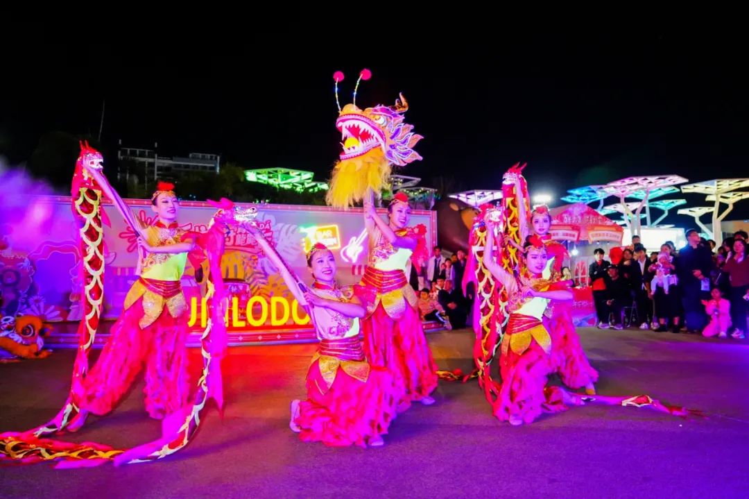 歡慶甲辰龍年元宵佳節(jié)的橫琴星樂(lè)度·露營(yíng)小鎮(zhèn),絢麗燈光流光溢彩,以傳統(tǒng)文化和沉浸式光影場(chǎng)景打造一個(gè)“不夜城”。