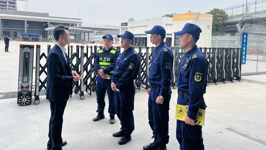 增設出入境車道及查驗場保安崗位,積極配合橫琴海關、橫琴邊檢對出入境客貨車輛進行指引,引導查驗車輛進行查驗及放行,對各崗位隊員進行了交通指引手勢、禮貌禮節及儀容儀表等方面的培訓及考核,提前部署三防物資及防暴物資,安排專職中級消防設施操作員進駐F區消防控制室值班。