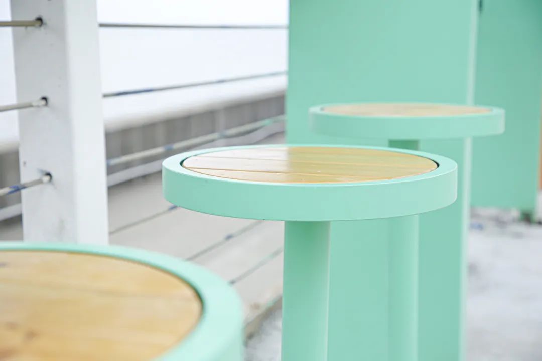 考慮到項目依水而建,為保障城市家具,在濱海氣候環(huán)境下的正常使用,在家具選材及制作工藝上,更加注重防水、防銹、防腐性能。