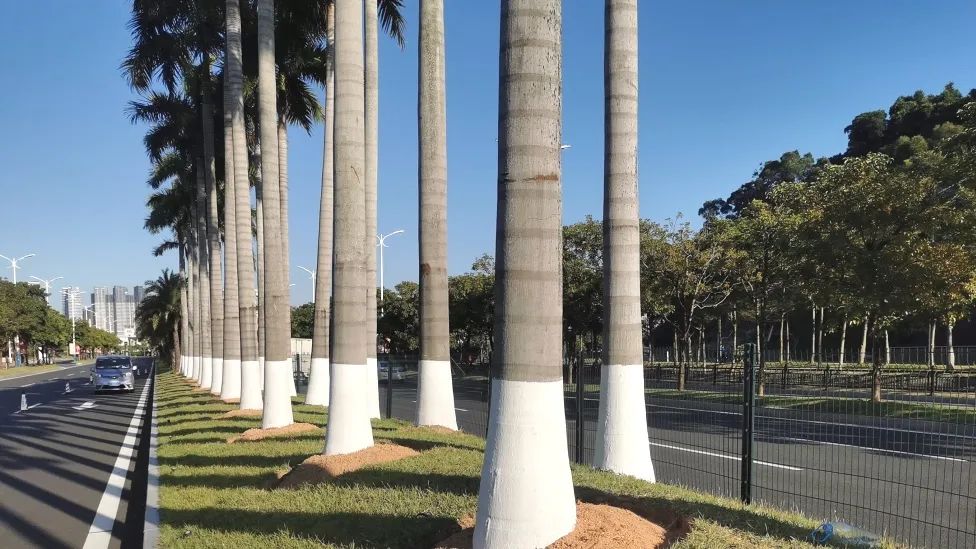 為了減少病蟲害發生,做好秋冬季樹木養護工作,2023年10月,大橫琴城資以橫琴大道為示范點開展喬木涂白工作,為喬木逐一披上美觀溫暖的“防護衣”。