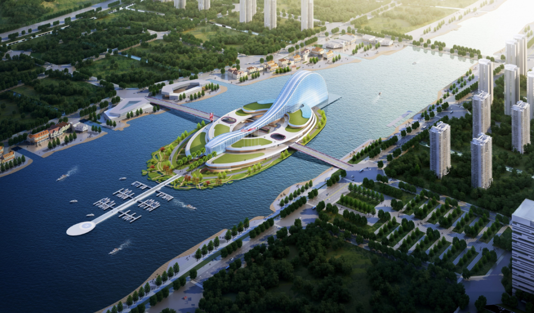 建筑、島嶼、橋梁空間互通,有機(jī)共融,打造地標(biāo)性島嶼建筑,助力構(gòu)建天沐河旅游休閑帶。
