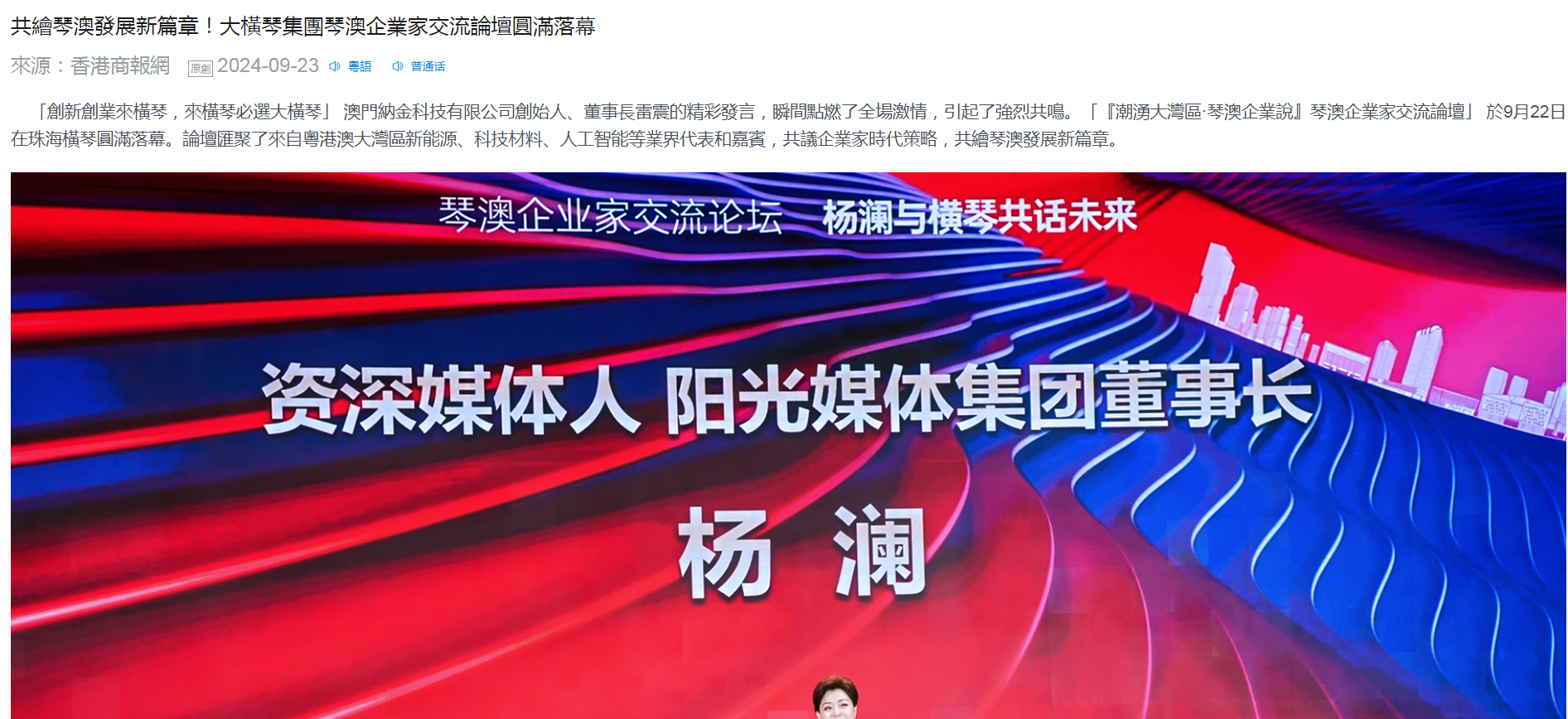 「創(chuàng)新創(chuàng)業(yè)來(lái)橫琴,來(lái)橫琴必選大橫琴」 澳門(mén)納金科技有限公司創(chuàng)始人、董事長(zhǎng)雷震的精彩發(fā)言,瞬間點(diǎn)燃了全場(chǎng)激情,引起了強(qiáng)烈共鳴。「『潮湧大灣區(qū)·琴澳企業(yè)說(shuō)』琴澳企業(yè)家交流論壇」 於9月22日在珠海橫琴圓滿落幕。論壇匯聚了來(lái)自粵港澳大灣區(qū)新能源、科技材料、人工智能等業(yè)界代表和嘉賓,共議企業(yè)家時(shí)代策略,共繪琴澳發(fā)展新篇章。