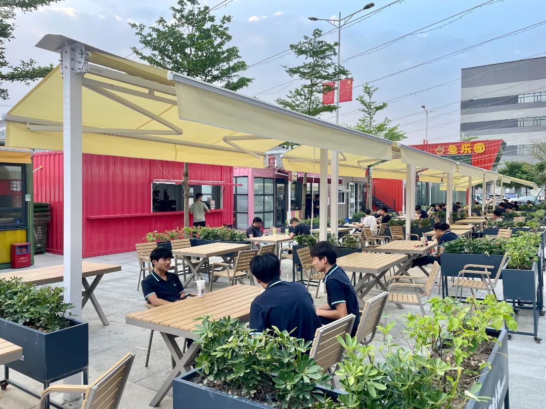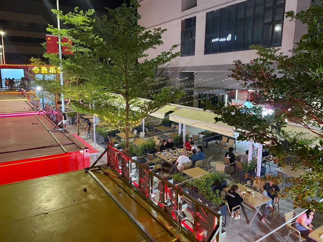富山街市位于斗門大橫琴5.0產業新空間,坐落于B區公服中心西側,占地面積1200㎡,有11個攤位,多個五顏六色的集裝箱錯落有致,儼然是工廠風的商務區—“廠BD”。