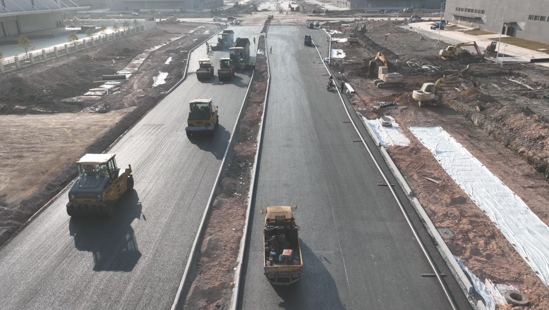 富山工業園二圍北片區園區配套道路工程是斗門大橫琴5.0產業新空間的重要配套,為二圍北逾200萬平方米的廠房提供交通、水電等配套設施,包含13條市政道路,總長約 15.55公里,建設意義重大,大橫琴股份為確保項目高效推進,克服地質條件復雜、施工界面狹小等重重難關,調集“人馬”,對緊要工序安排24小時連續作業,對危險性不高、工期緊迫的工序安排雙班作業,與時間賽跑。