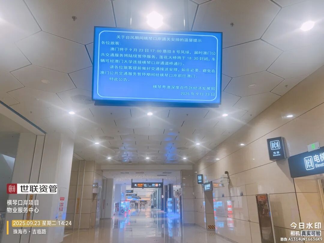 與合作區經濟發展局緊密聯動,利用橫琴口岸的公共顯示屏及時播放臺風預警信息、通閉關信息,讓旅客隨時知悉通關情況,減少滯留旅客,并在口岸開辟專門滯留區,及時疏導滯留旅客,對需要特殊照顧的旅客由專人指引到母嬰室安置。